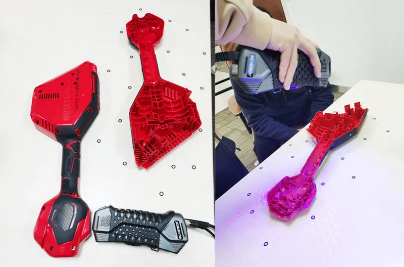 本次需掃描的電動工具塑膠外殼有許多深孔、間隙、深槽等複雜表面,使用其他三維測量設備時,這些部位的數據很難被完整採集。